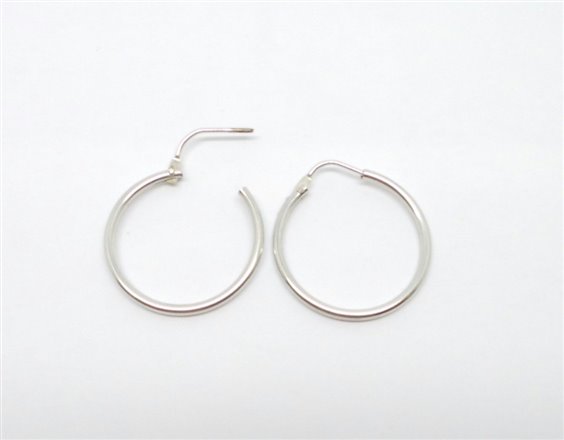orecchini in oro bianco lucido  chiusura con  perno a scomparsa . misura del tubo mm 1.7. diametro orecchino mm 28 . certificato di garanzia e punzonatura