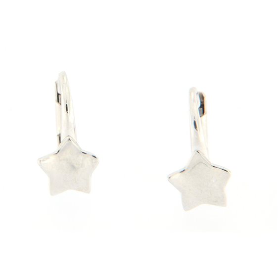 orecchini in oro bianco lucido con chiusura a monachella pendente mm 12 con centrale a forma di stella diametro mm 7. punzonato secondo normativa e certificato di garanzia