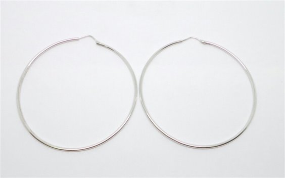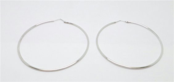 orecchini in oro bianco lucido  chiusura con  perno a scomparsa . misura del tubo mm 1.7. diametro orecchino mm 63 . certificato di garanzia e punzonatura