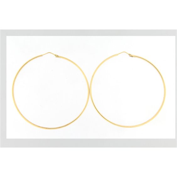 ORECCHINI A CERCHIO IN ORO GIALLO LUCIDO CON CHIUSURA CON FORCELLA A SCATTINO . IL TUBICINO DI MM 1,7  DI SPESSORE  . IL DIAMETRO GRANDEZZA ORECCHINO è DI CM 6. CERTIFICATO DI GARANZIA