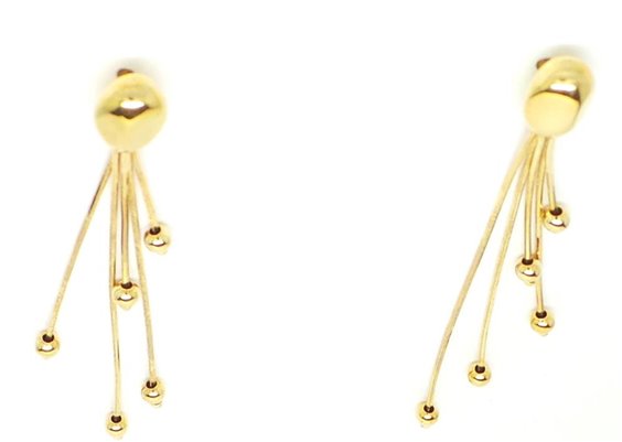 Orecchini in Oro giallo 18 ct, lavorazione a coda di topo a scalare con sfere (lunghezza massima 6 cm) chiusura a perno e farfallina, peso 5,2 g