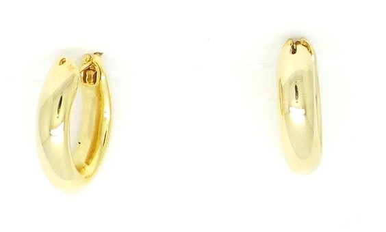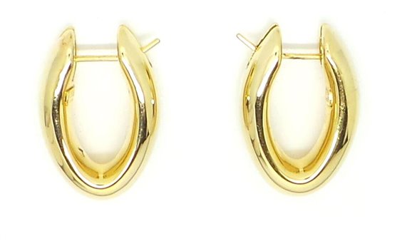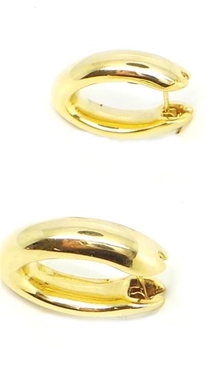 ORECCHINI IN ORO GIALLO LUCIDO 18 CARATI, FORMA OVALE, SPESSI MM 5,3, LARGHI MM 7,5. LUNGHEZZA CM 2,5. PESO GRAMMI 7,3