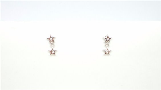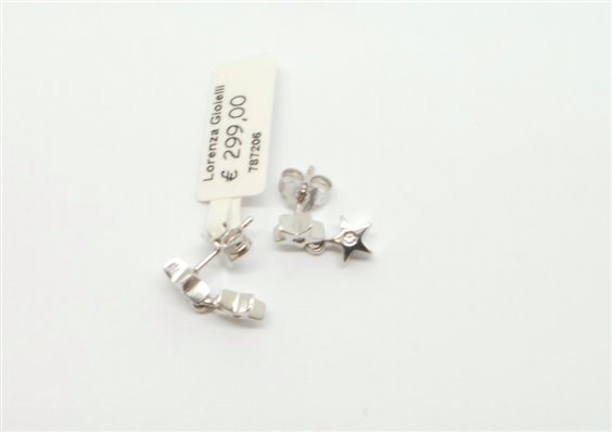 ORECCHINI PENDENTI IN ORO BIANCO LUCIDO A FORMA DI STELLINA CON DIAMANTINO CENTRALE .PENDENZA TOTALE MM 16 X 6.4 LARGHEZZA, SPESSORE MM 2.8 . CHIUSURA CON PERNO E FARFALLINA .TUTTO CON CERTIFICATO DI GARANZIA