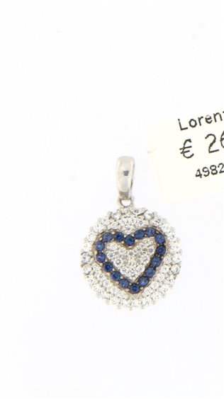 pendente in oro bianco con zirconi blu e bianchi diametro mm 13 lunghezza totale mm 20