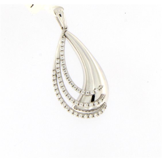 pendente per catenina in oro bianco cm 3 x 1,6. impreziosito da zirconi. certificato digaranzia
