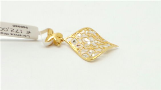 pendente in oro giallo con fantasia floreale traforata  in oro bianco ,PENDENZA TOTALE CM 3 ,CONTROMAGLIA DI BELLA MANIFATTURA . TUTTO CON CERTIFICATO DI GARANZIA