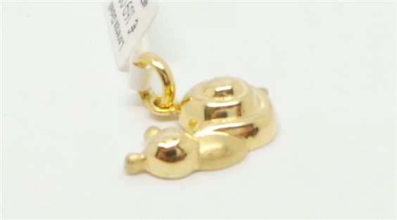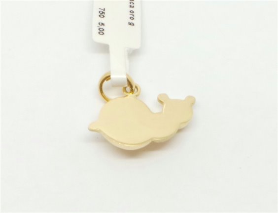 PENDENTE PER CATENINA IN ORO GIALLO LUCIDO A FORMA DI CHIOCCIOLA ,PIATTA SUL RETRO CON POSSIBILITA' DI PERSONALIZZAZIONE ,MISURA DI PENDENZA MM 19 / LARGHEZZA MM 21 / SPESSORE 5 MM . INCISO MARCHIO DELL' ORO SULL'ANELLO DI PENDENZA . CERTIFICATO DI GARANZIA
