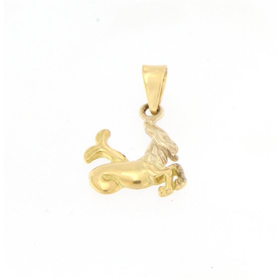 ciondolo per catenina in oro giallo e parte rodiata bianca riporta lo zodiaco CAPRICORNO. punzone secondo normativa