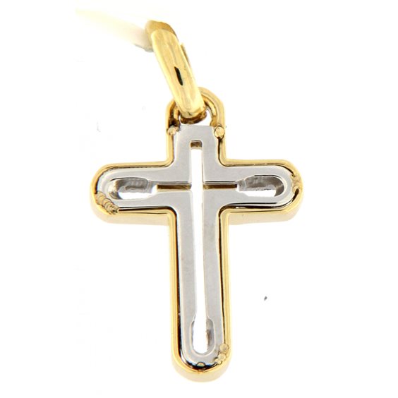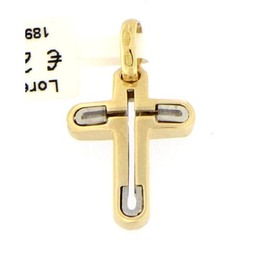 PENDENTE A CROCE MASSICCIA ORO BICOLORE LUNGHEZZA CM 3 LARGHEZZA BRACCIA CM 1,5 SPESSORE MM 2,6. CERTIFICATO DI GARANZIA