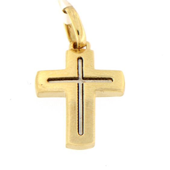 CROCE IN ORO BICOLORE MASSICCIA LUNGHEZZA CM 3 LARGHEZZA BRACCIA CM 2 .CHIUSA ANCHE SUL RETRO SPESSORE MM 2,2.CERTIFICATO DI GARANZIA