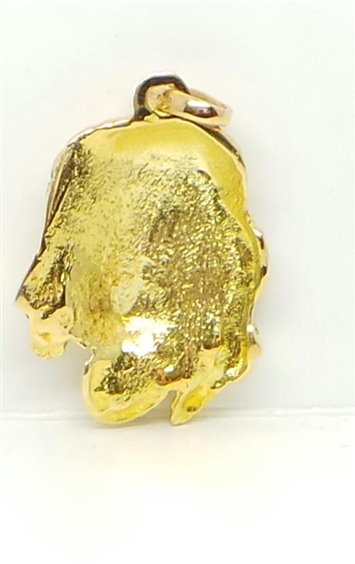 PENDENTE IN ORO MASSICCIO 750/°°° GIALLO. VOLTO DI GESU' MISURA CM 4 X 2 ,PESO GR 12. SPESSORE MM 5,2 . CONTROMAGLIA DOVE SCORRE LA CATENA MISURA MM 6.5