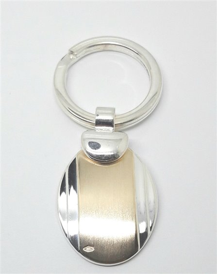 portachiavi in argento e oro 18 kt con anello per chiavi di diametro mm 28 lunghezza totale cm 6 piastra sotto di larghezza mm 25 per meta' argento e x meta'oro (piccolo strato). retro con possibilita' di incisione. certificato di garanzia