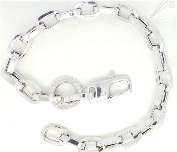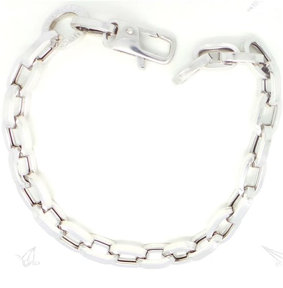 Bracciale Oro bianco lucido 18ct con maglia rollò cm 0,63 di diametro, lunghezza massima bracciale, 18,5 cm, peso 10,5 g. vicino alla chiusura riporta un anello con logo E PUNZONE AZIENDALE SECONDO NORMATIVE VIGENTI. TUTTO CON CERTIFICATO .