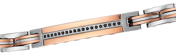 Bracciale in acciaio pvd rosè con zirconi neri.