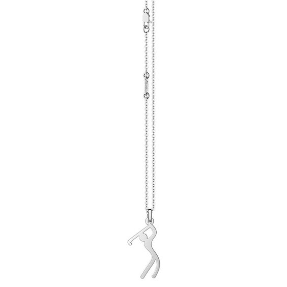 Collana in argento con tema sport - Golf. In occasione delle olimpiadi di Tokio 2020. Il pendente è a forma di giocatore di golf. Chiusura a moschettone. lunghezza pendente cm 3x 1 largh