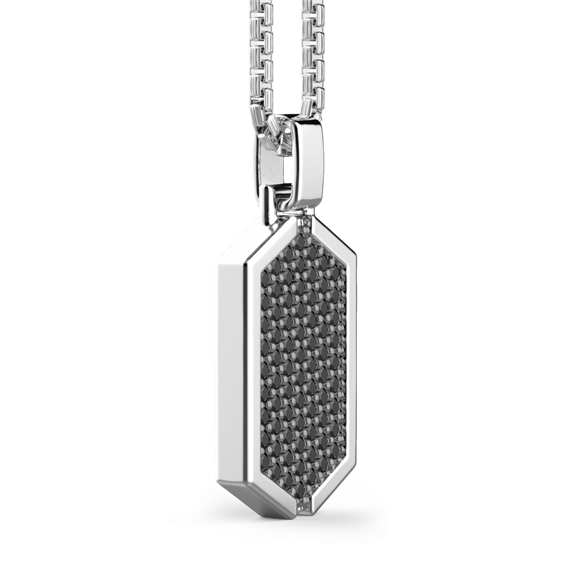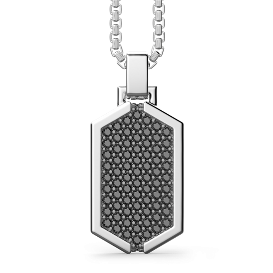 Dettagli del prodotto Pietre: Spinelli neri Materiali: Argento 925 Trattamento: Brunito con rodiatura nera Colore: Nero Simbolo: Targa Tipologia: Collane